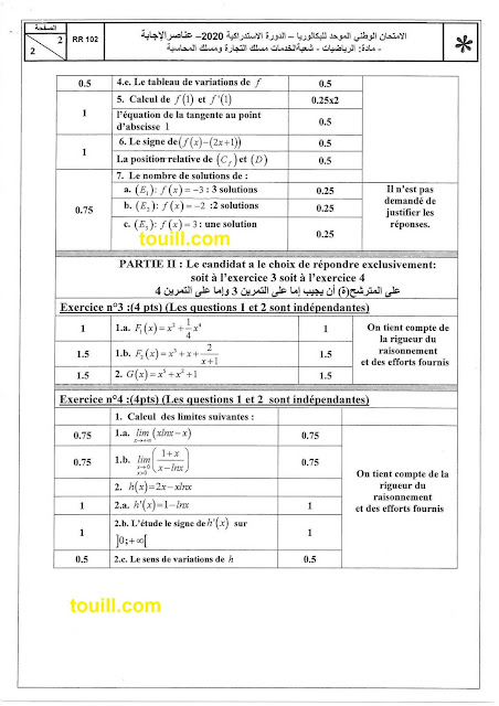 تصحيح الامتحان الوطني الرياضيات - 2020 الدورة الاستدراكية العلوم فيزياىية و تجريبية